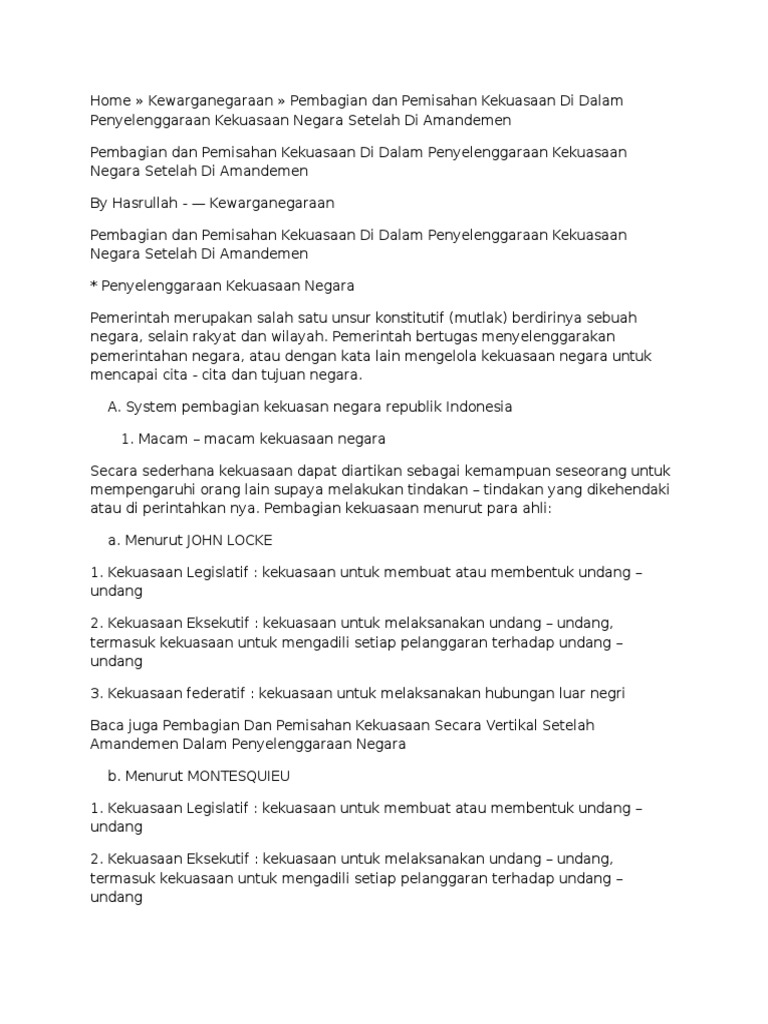 Macam Macam Kekuasaan Negara Menurut John Locke Dan Montesquieu Habibullah Al Faruq