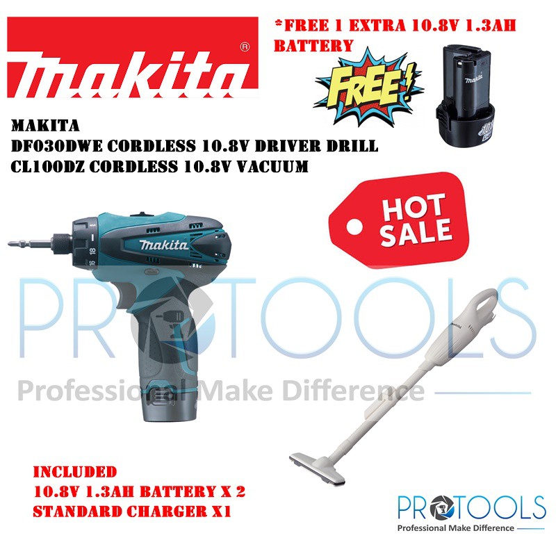Makita Df030dwe Cordless 10 8v Driver Drill Cl100dz Cordless Vacuum Value Pack Shopee Malaysia