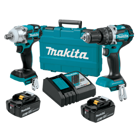 Makita Dlx2180tj Cordless Twin Pack Brushless Kit Dhp484 Combi Drill Dtd153 Impact Driver 18v 2 X 5 0ah Batteries