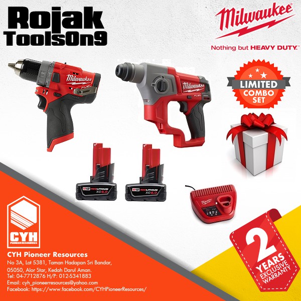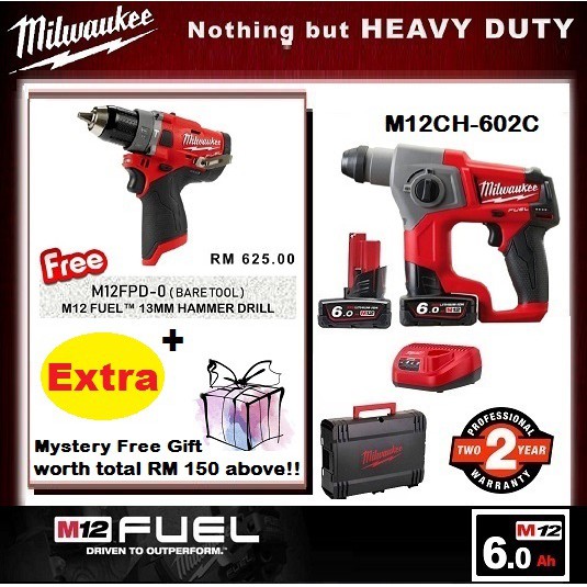 Milwaukee M12ch 602c 12v Cordless Sds Plus Rotary Hammer M12cpd 0 Fuel Combi Percussion Drill 12v Lazada