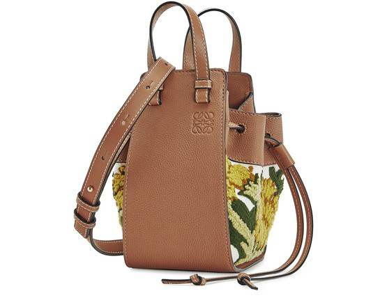 Yellow Hammock Mini Embroidered Linen And Textured Leather Shoulder Bag Loewe Net A Porter