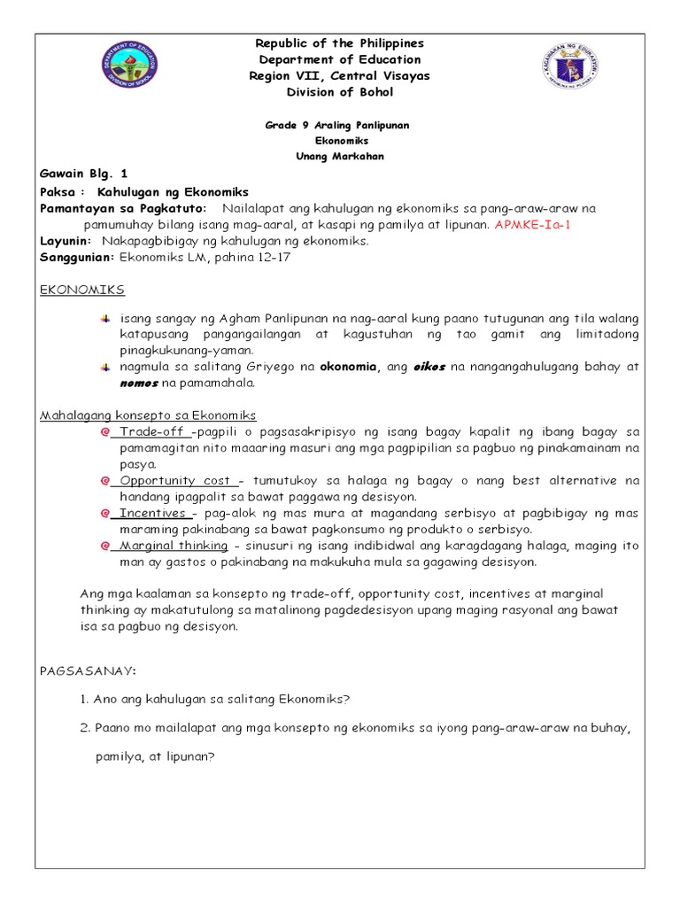 Https 307020 Srnhs Com Wp Content Uploads 2020 08 Modyul 1 Kahulugan Ng Ekonomiks Sa Pang Araw Araw Na Pamumuhay Pdf