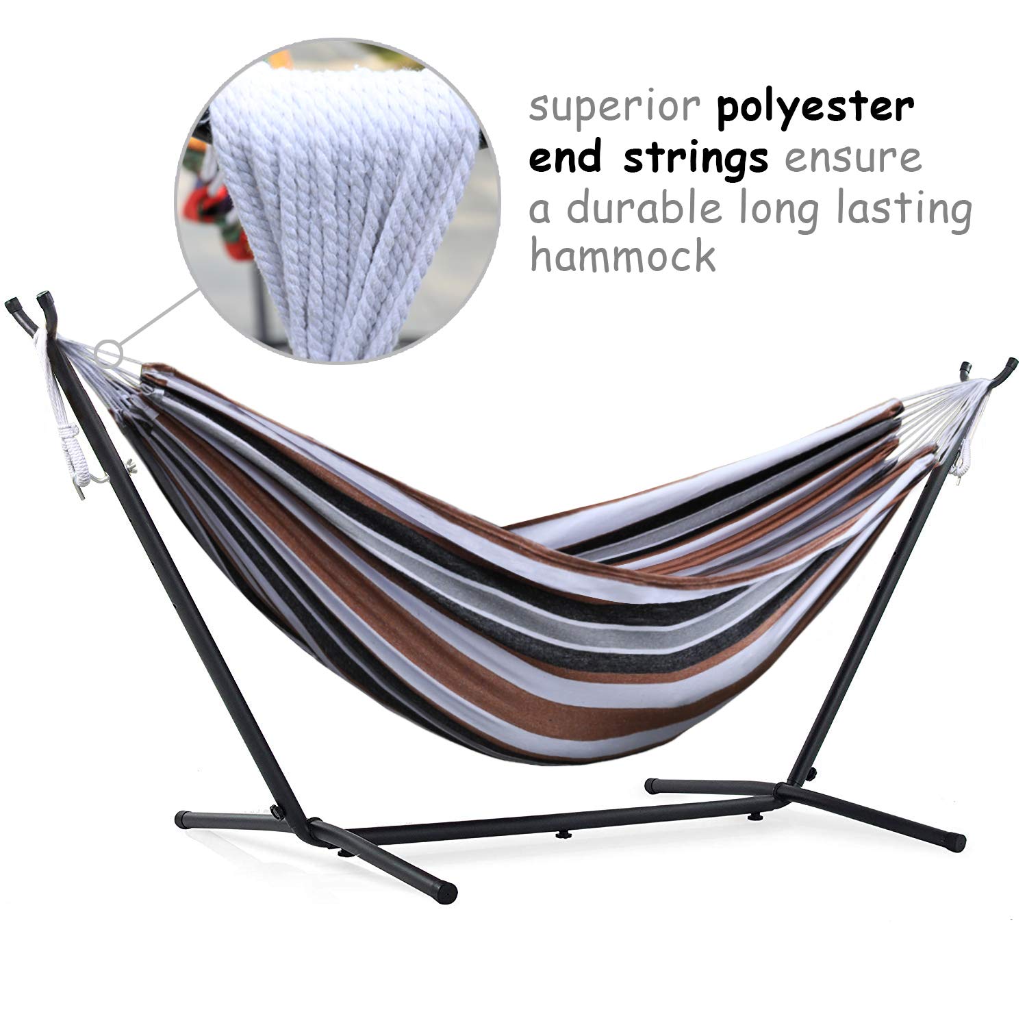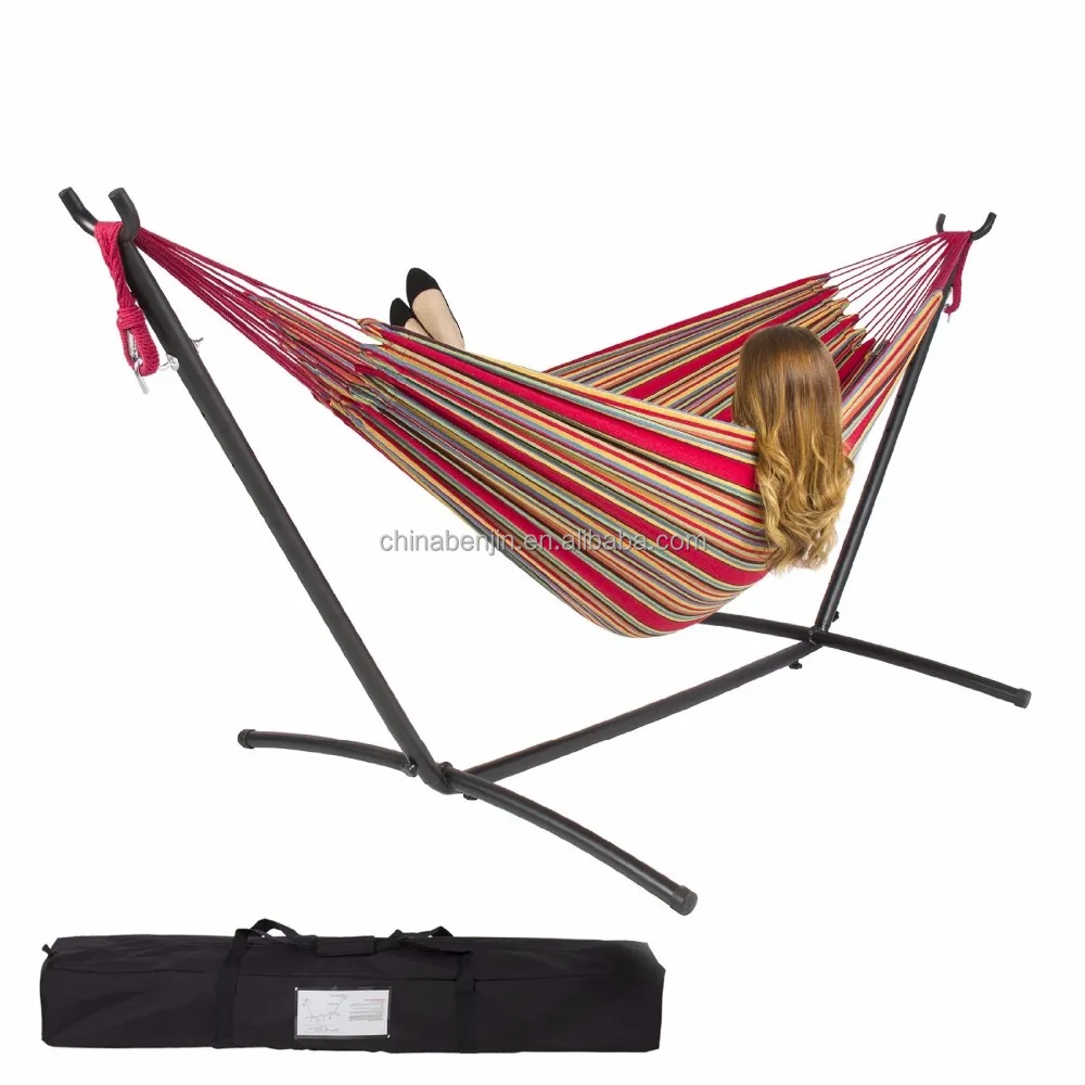 Amazon Com Best Choice Products 2 Person Indoor Outdoor Brazilian Style Cotton Double Hammock Bed W Carrying Bag Steel Stand Desert Stripes Garden Outdoor