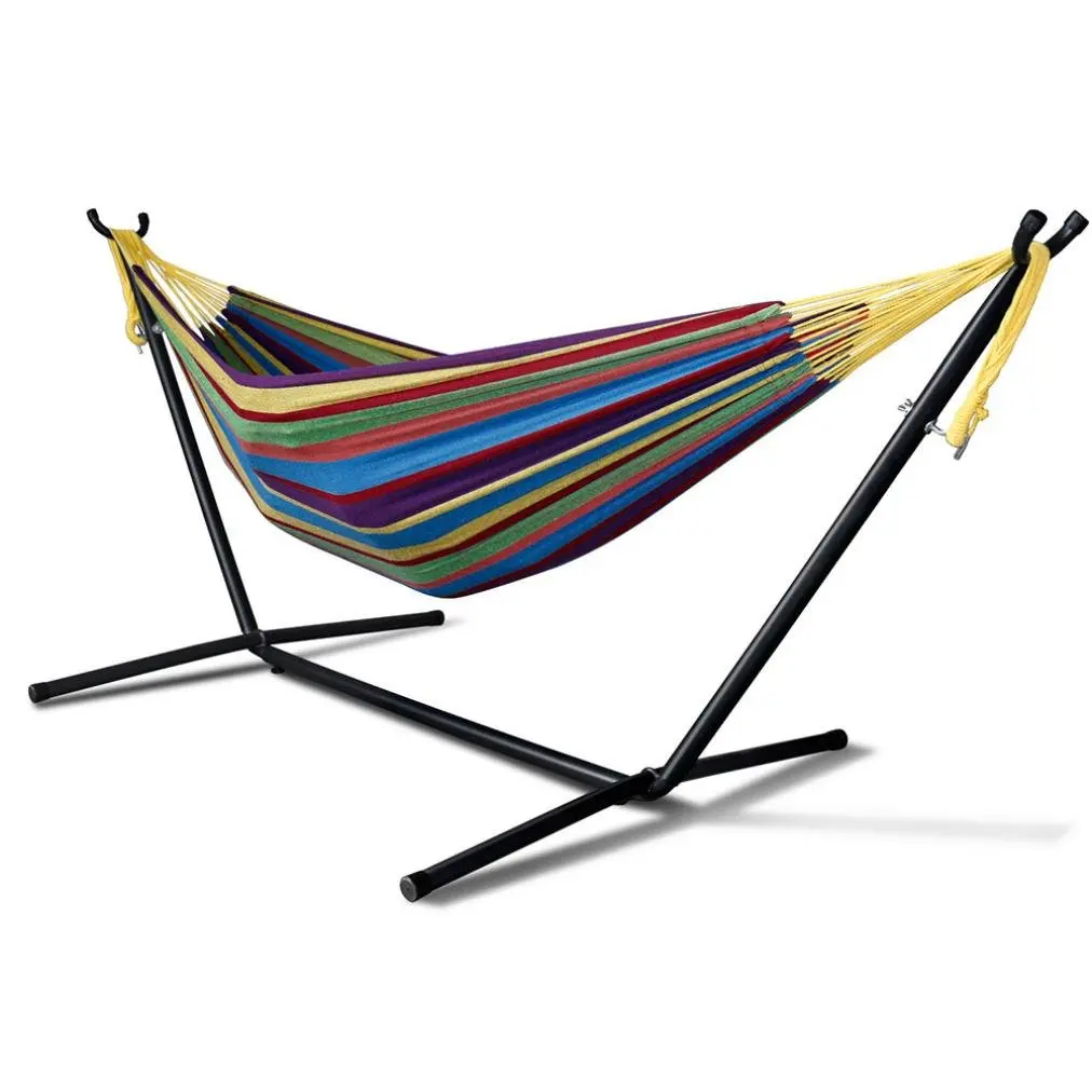550 Pound Capacity Portable For Backyard Rainbow Color Camping Indoor Outdoor Use Adjustable Steel Hammock Stand And Extra Large Cotton Hammock Zupapa Hammock With Stand 2 Person Hammocks Patio Lawn Garden