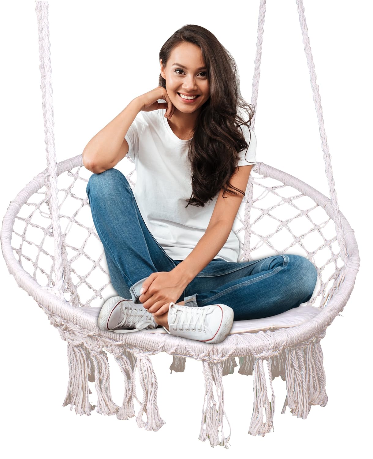 Macrame Hammock Chair Swing Seat Indoor Outdoor Hanging Rope Swing Chair Large Size For Garden Porch