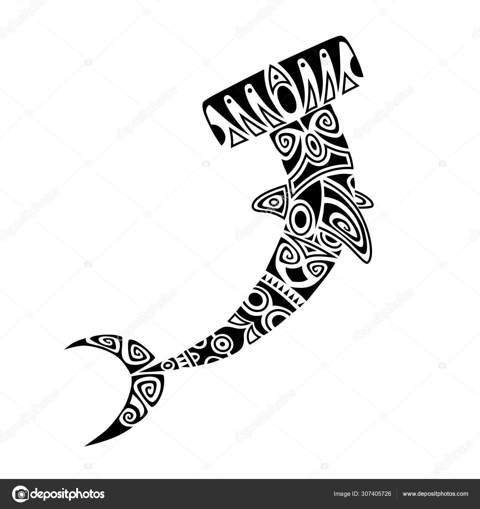 Hammerhead Shark Maori Style Tattoo Sketch Stock Vector C Marinastorm5554 307405726