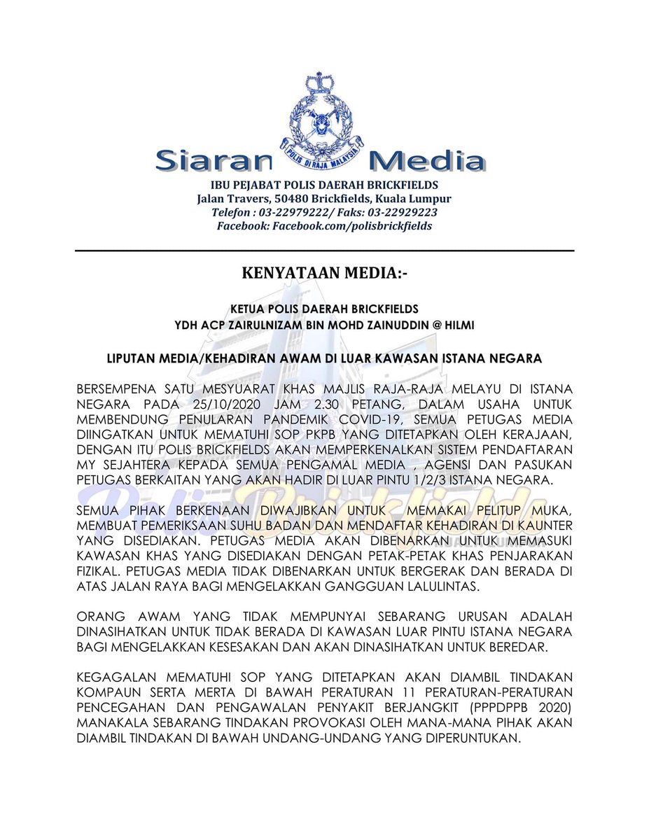 Bfm News On Twitter Pdrm Has Advised The Public Against Gathering Outside Istana Negara Where A Special Meeting Of The Conference Of Rulers Is Set To Take Place Today Brickfields Police Also