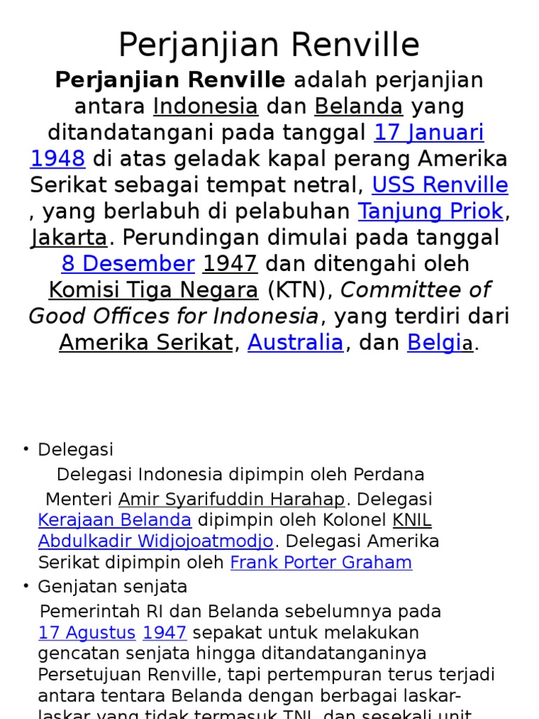 Perjanjian Renville Terjadi Pada Tanggal 17 Januari 1948 Yang Diketuai Oleh Perdana Menteri Amir Syarifuddin Per Janjian Tersebut Sangat Merugikan Bangsa Indonesia Karena Daerah Yang Diakui Hanyalah Sumatra Jawa Da N Madura 1cak For
