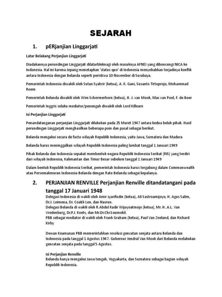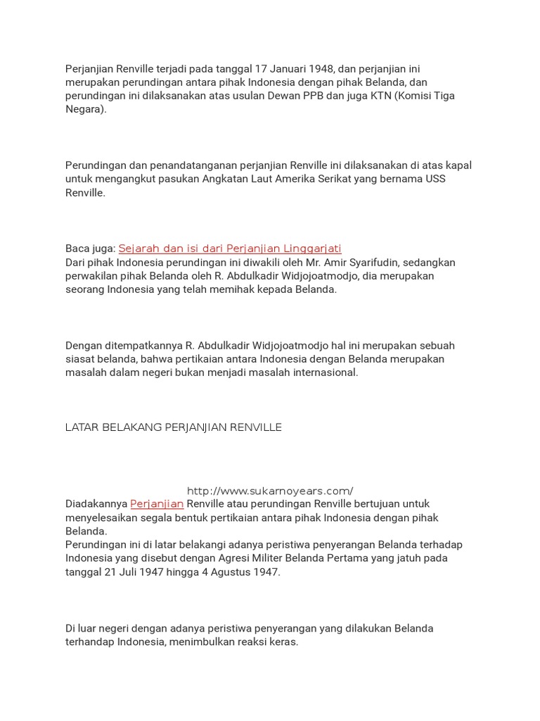 Sejarah Lengkap Perjanjian Renville Materi Anak Ips