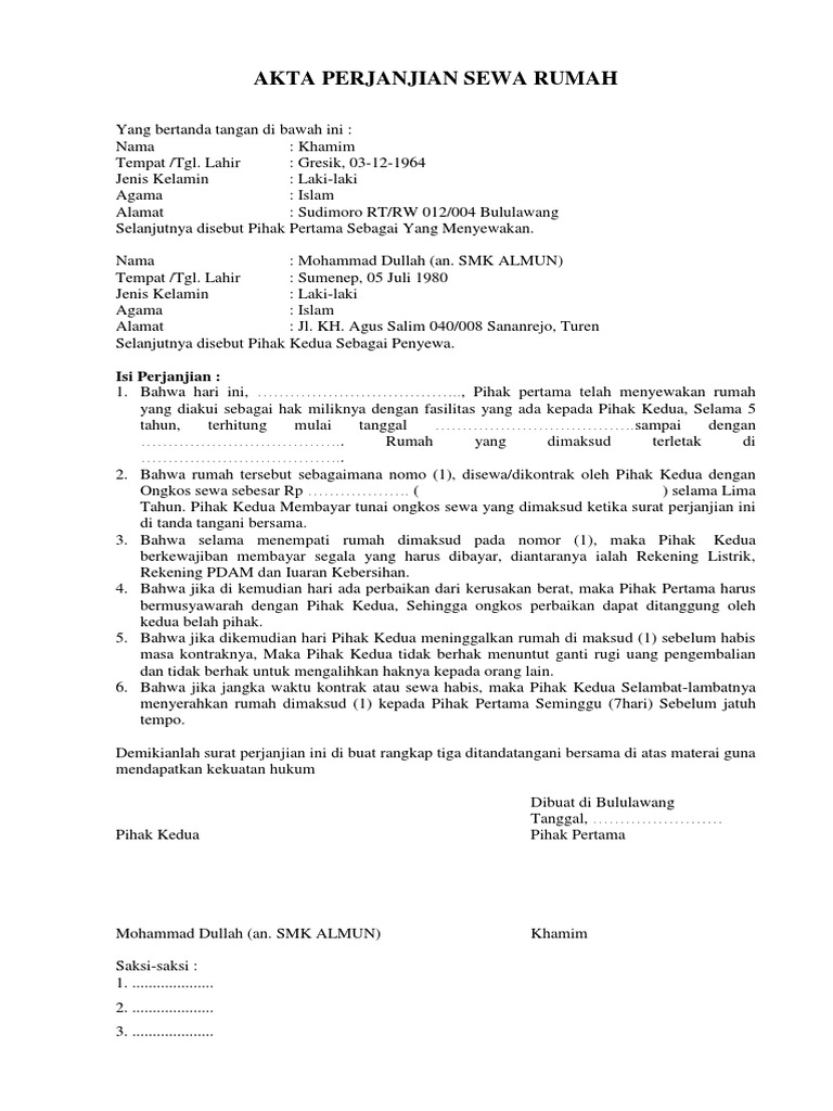 Contoh Surat Perjanjian Sewa Rumah Pimilik Wajib Buat Impiana