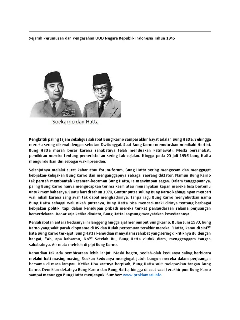 Perumusan Dan Pengesahan Uud Negara Republik Indonesia Tahun 1945