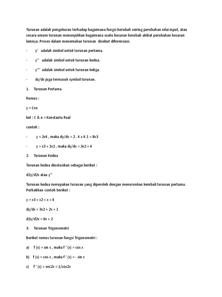 Turunan Matematika Materi Aljabar Trigonometri Aplikasi Turunan