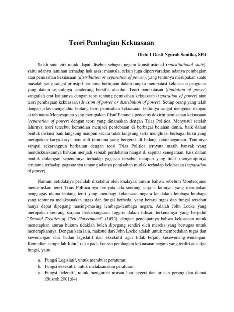 Sebutkan Pengertian Pembagian Kekuasaan Menurut Para Ahli Selain John Lock Dan Montesquieu Brainly Co Id