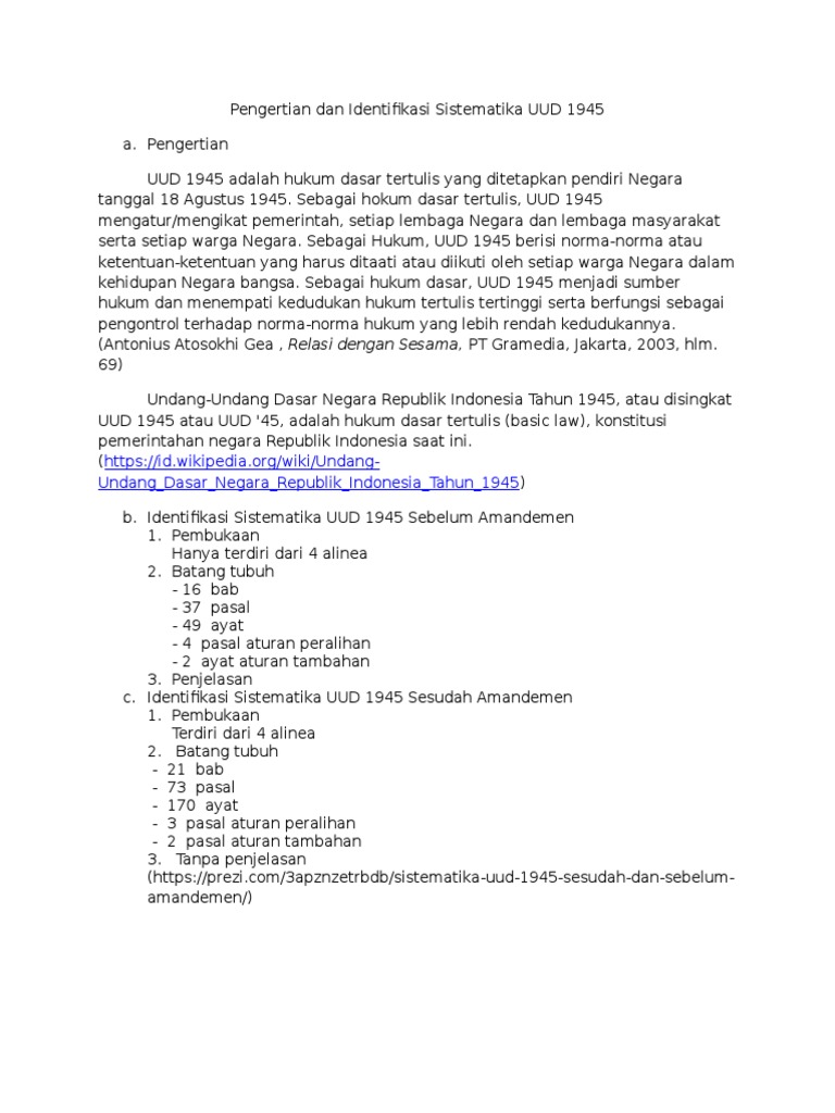 Bagaimana Sistematika Uud Negara Ri 1945 Sebelum Dan Sesudah Perubahan Atau Amandemen Brainly Co Id
