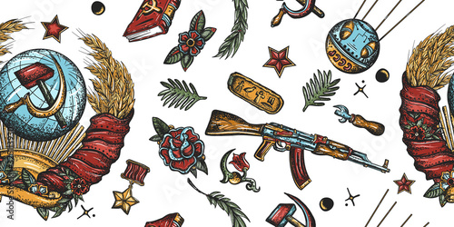 Set Of Red Color Soviet Vignettes Set Of Red Color Soviet Decorative Typographic Vignettes And Tattoos With Stars Sickle