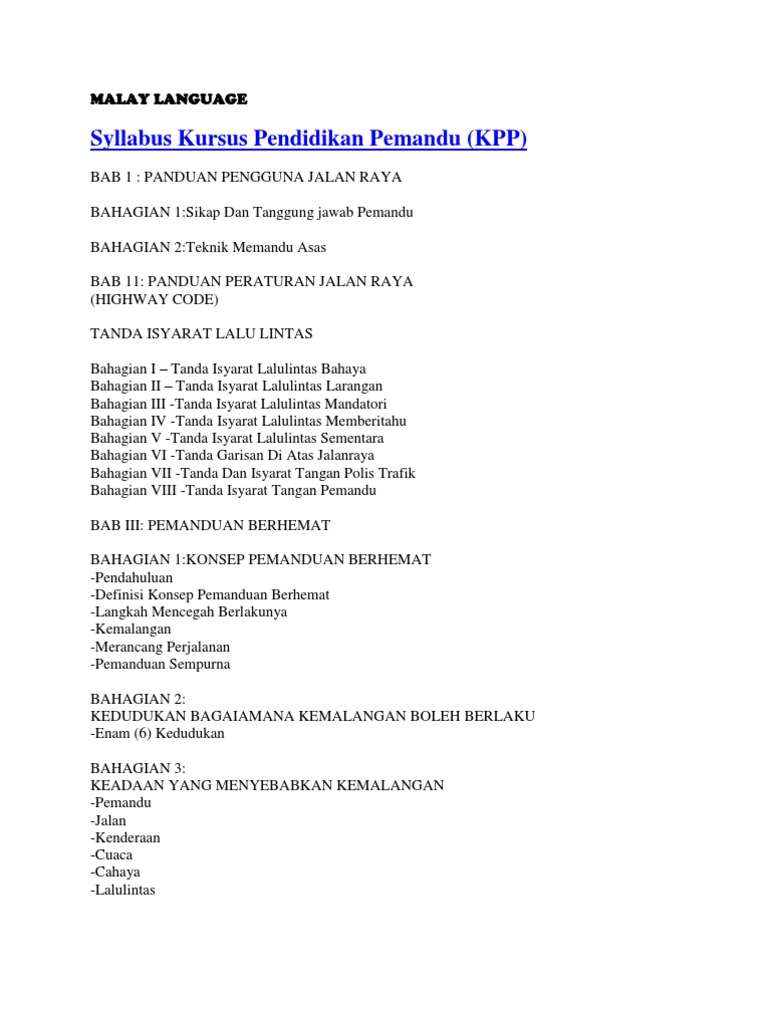 Latihan Pendidikan Pemandu Kurikulum Pendidikan Pemandu Tanda Isyarat Lalulintas Highway Code