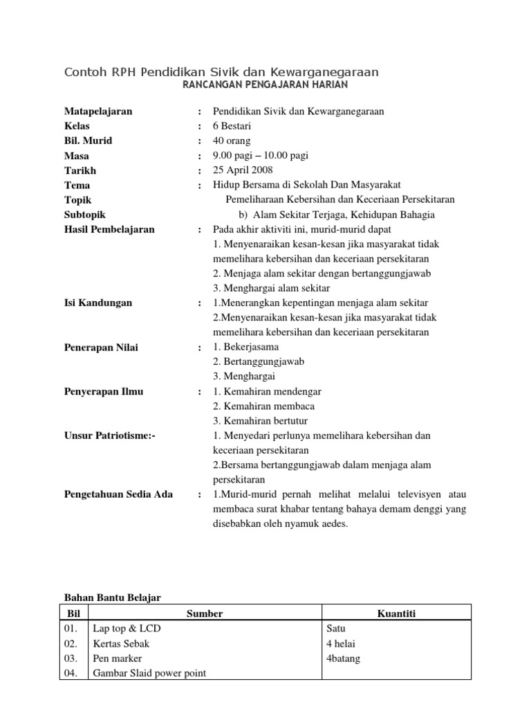 Doc Tahun 4 Rancangan Pengajaran Harian Pendidikan Sivik Dan Kewarganegaraan Zaahara Mahlidi Academia Edu